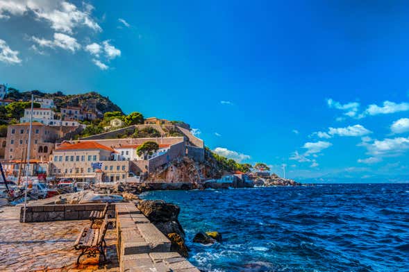 Climb back on the boat and enjoy unparalleled views of the sea on the hour-long journey to Hydra, an old refuge for Saronic pirates. Upon arrival at Hydra’s port, you'll have an hour and 45 minutes of free time to explore its picturesque narrow streets, marvel at its mansions and relax at one of its agreeable cafés. What's more, you'll have the opportunity to make the most of the beautiful beach, sunbathing and enjoying a dip in the sparkling azure sea.